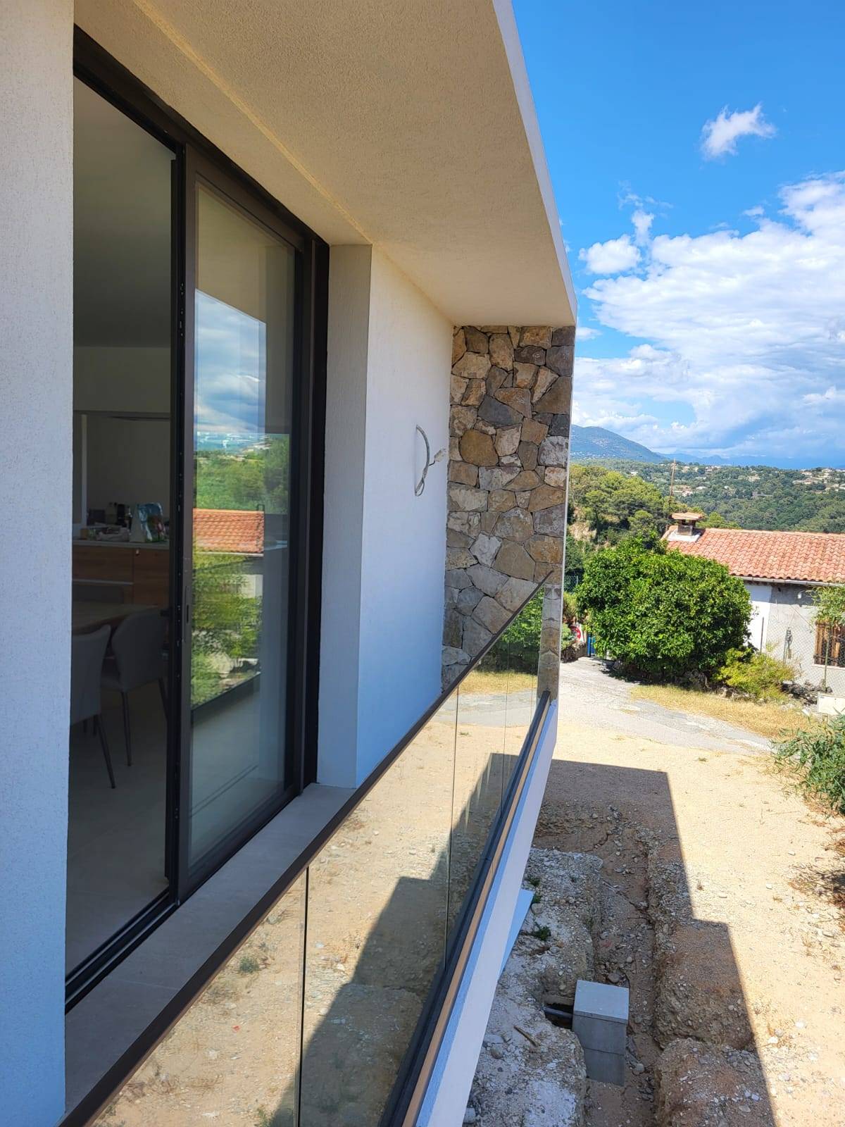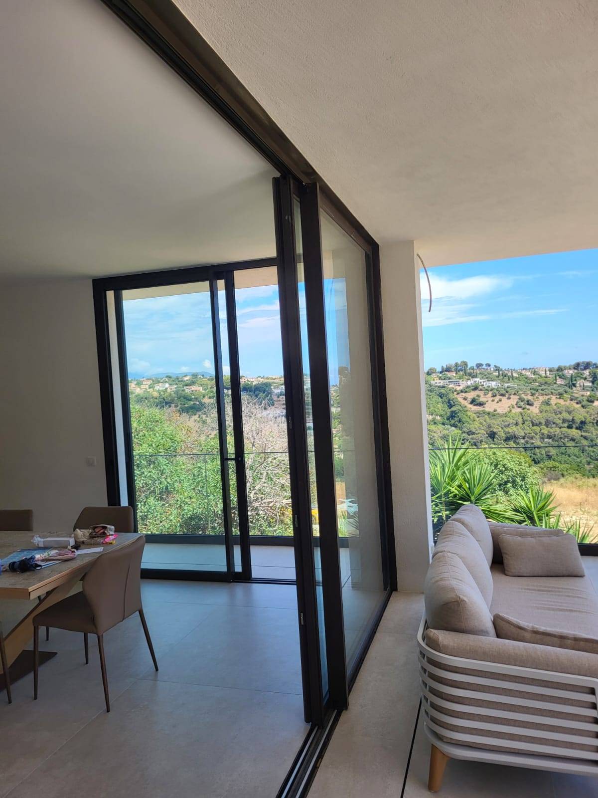 Pour répondre à ces exigences, le choix s’est porté sur des menuiseries aluminium haut de gamme, fabriquées et posées par Azur Alu, fabricant poseur reconnu sur la Côte d’Azur.