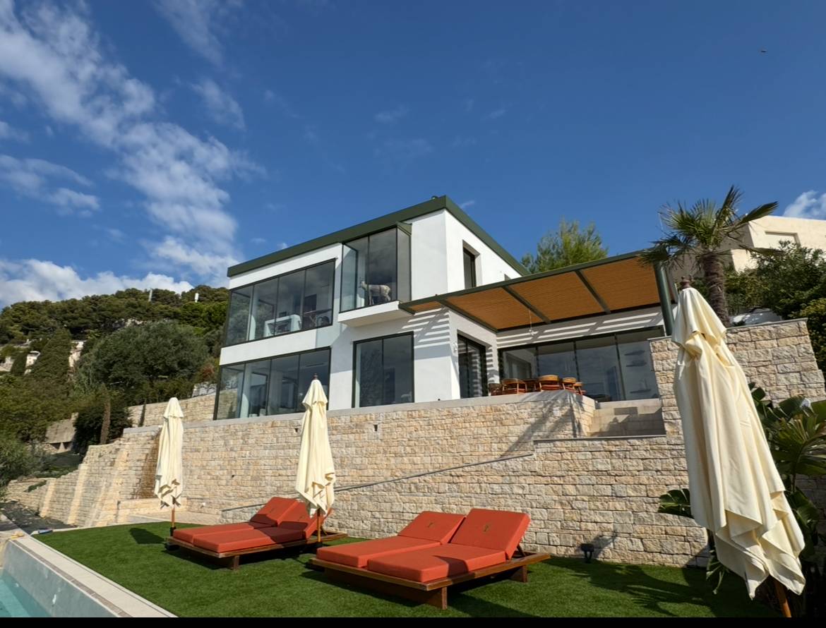 Pour ce magnifique projet à Roquebrune-Cap-Martin, les équipes d’Azur Alu ont conçu et installé l’ensemble des menuiseries aluminium de cette villa contemporaine, en profilés Schüco.