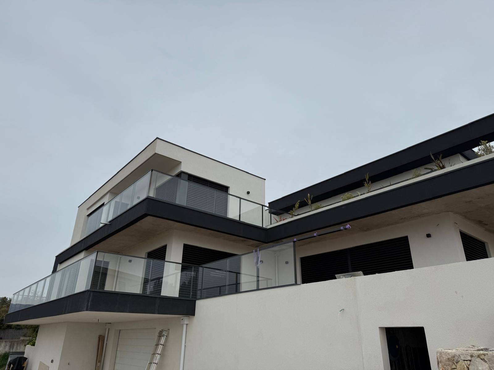 Les garde-corps aluminium sur mesure, également fabriqués dans notre atelier, viennent compléter l’ensemble architectural de la villa. Pensés à la fois pour la sécurité et le design, ils s’intègrent harmonieusement aux lignes de la construction et répondent strictement aux normes de sécurité en vigueur.